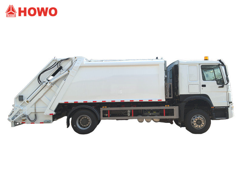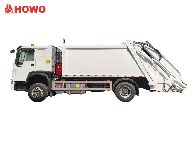 Howo社のごみ圧縮トラックは、シャーシ、ごみコンパートメント、油圧システム、制御システム、およびバケット回転機構で構成されています。完全に密閉されたコンパートメントは、輸送中のごみの飛散や漏れを効果的に防ぎ、道路を清潔に保ちます。後部のバケット回転機構または傾斜装置により、ごみが自動的にトラックのコンパートメントに投入されるため、手作業が大幅に削減されます。