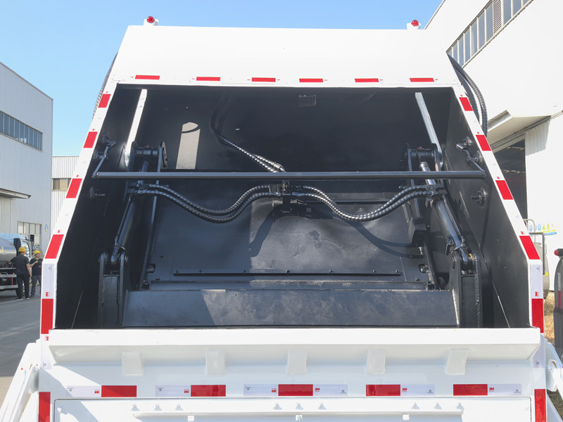 Howo製リアローダー式ごみ収集車の最大の特徴は、その強力な圧縮能力です。油圧システムにより、ばらばらのごみを元の体積の3分の1、あるいは4分の1まで圧縮できるため、積載量を大幅に増やすことができます。これにより、輸送時間、燃料費、人件費を削減できるだけでなく、清掃作業全体の効率も向上します。積載容量は、小型の6立方メートル、8立方メートルから大型の14立方メートル、20立方メートルまで幅広く用意されており、様々な道路状況や作業環境に対応できます。