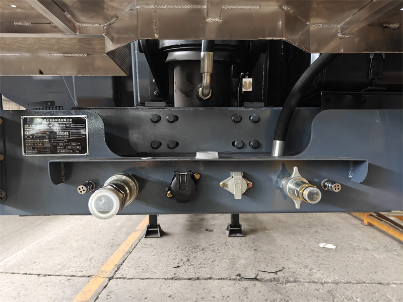 The新しい 3 車軸 40トンティッパー ボディトレーラーはQ370R材を使用し、設計圧力1.61MPa、板厚12~16mmを誇ります。HYVA油圧システムと圧力計を装備し、運転中の安全性を確保します。BPWブリッジ、JOSTキングピン、JOSTアウトリガーなどの特長により、多様な環境や道路状況における輸送ニーズに対応します。