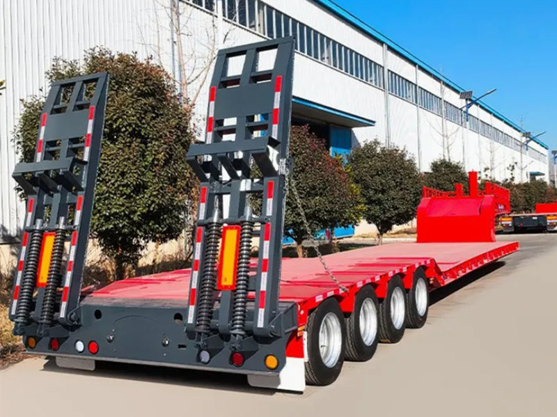 私たちの 4軸80トン低床トレーラー 着脱式グースネックと低重心設計を採用し、13トンのFuwa製車軸4本と強化リーフスプリングサスペンションシステム10枚を装備。この組み合わせにより、積載能力の向上と低重心化を実現。最適化されたサスペンションは走行安定性を大幅に向上させ、モジュール構造は迅速な積み下ろし作業をサポート。様々な種類の貨物に対応し、輸送効率を総合的に向上。標準化されたコンポーネントにより互換性とメンテナンスの容易性を確保し、お客様の特定のニーズに合わせて高度にカスタマイズされたソリューションも提供可能。