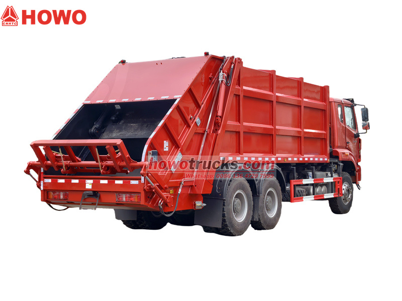 Howoのごみ圧縮車は、先進的なHW19710ギアボックスと頑丈な6×4駆動システムを採用し、複雑な道路状況でも安定性と効率性を確保します。20CBMの湾曲型タンクボディはT420特殊鋼製で、タンクボディの厚さは5mm、一体成形プロセスを採用しています。圧縮比は1:3.4と高く、ごみ圧縮の究極の効率性を保証します。