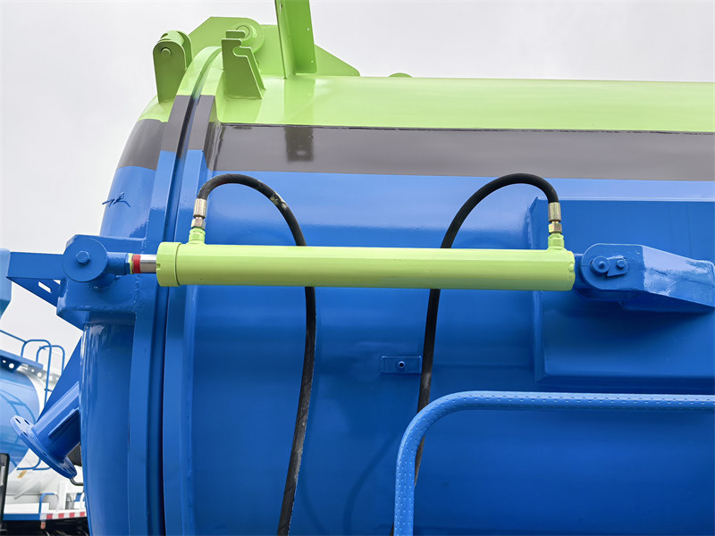 標準構成 | 点検窓、排出弁、洗浄装置、長さ5メートルの吸引パイプ、油水分離器、オーバーフロー弁などを装備しています。 シリンダー型真空タンクは油圧で40~45度まで持ち上げることができます。後部ドアは油圧で開閉できます。 | |