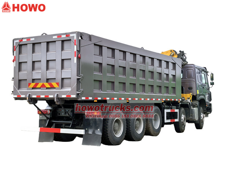 13000*3The Howo製クレーン付き鉱山用ダンプトラックは Howo ヘビー 10x4 ドライブシャーシ、装備 WP12S400E201ディーゼルエンジンと HW19710 10高速ギアボックス。強力なパワー性能を持ち、複雑な作業条件にも適応できます。 CSナックルクレーン 最大吊り上げ能力 8トン。