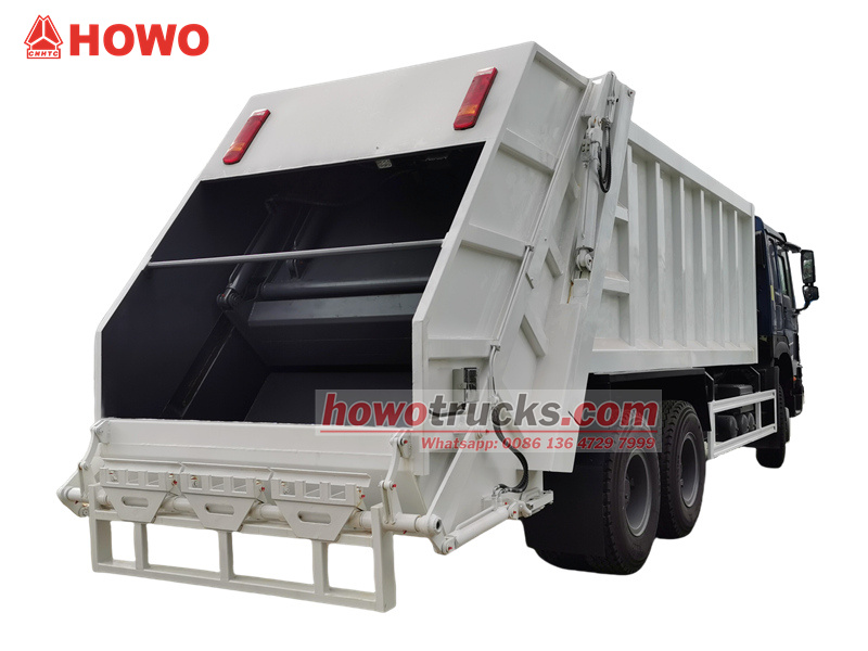 4×4, 6×6, RHD drive is optionalHOWO 20立方メートル後部積載トラックは、HOWOの大型トラックシャーシをベースにした大型特殊清掃車両です。自動収集、圧縮、移送機能を統合しています。単なる廃棄物運搬ツールにとどまらず、そのコア技術は「圧縮」にあります。最大18MPaの油圧システムを用いて、コンテナ内の緩い家庭ごみを強力に圧縮します。このプロセスにより、有効積載容量は20立方メートルに増加し、1回の運搬効率が大幅に向上します。車両は完全密閉構造を採用しており、圧縮時に発生する排水は専用の汚水タンクに完全に回収されます。これにより、従来のごみ収集車にありがちな「漏水やこぼれ」の問題を根本的に解消し、都市ごみの収集・運搬における二次汚染に対する効率的な解決策を提供します。
