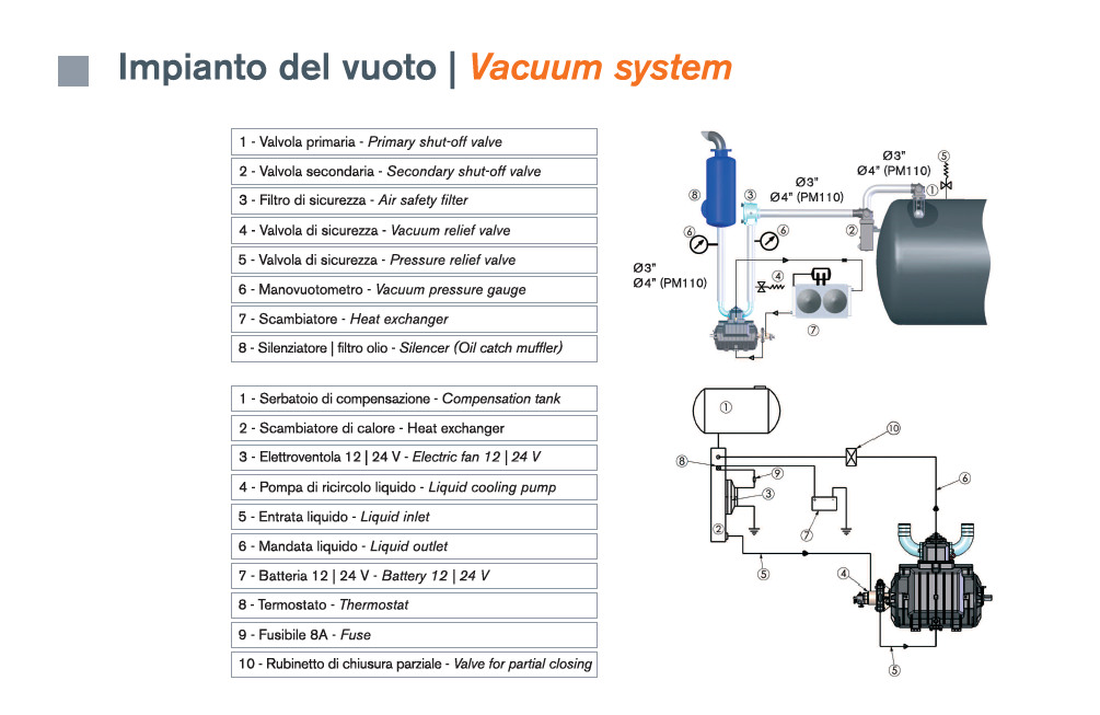 ▶ イタリア製のMORO社製真空ポンプを搭載し、高い排気量、低騒音、そして卓越した真空性能を実現。50メートルを超える吸引距離と8~12メートルの垂直吸引深度を可能にします。