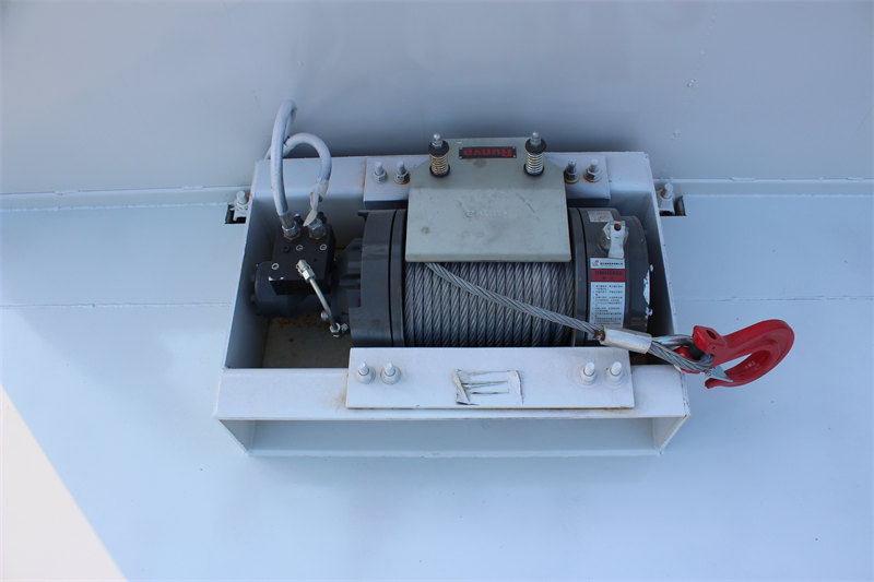 4. 効率的な自動積み込み・積み下ろし: 8トン油圧ウインチ、2メートル油圧式ランプ、25トン油圧式フロントサポートレッグを備えており、追加の機械に頼ることなく、機器の積み下ろしを独立して行うことができます。