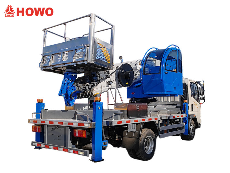 最大作業高さ28メートルのこの車両は、5段同期伸縮ブームと4つのV字型油圧アウトリガーを備え、脚幅4200mmで作業中の優れた安定性を実現しています。ステンレス製のプラットフォームは200kgの積載能力を持ち、360°連続回転に対応し、双方向操作が可能です。地上、プラットフォーム、無線リモコンの3つの制御システムと緊急安全装置を装備しています。高効率と柔軟な操作性で知られるこの車両は、 HOWO マンリフトトラック 安全性と汎用性を兼ね備え、都市部のメンテナンス、送電線点検、広告設置、その他の高所作業において幅広く使用されています。