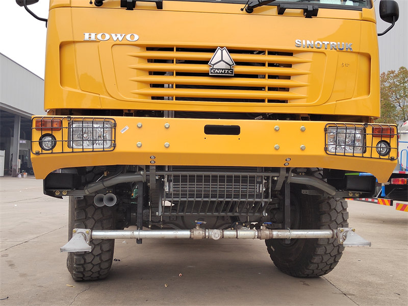 13000HOWO 4×4 ウォータータンカートラックは、堅牢なHOWO 4×4全輪駆動オフロードシャーシをベースに開発された、高性能かつ多機能な粉塵抑制車両です。卓越したオフロード性能を誇り、STR鋳造フロントステアリング駆動アクスルとST16リア駆動アクスル、そしてワイドホイールベース設計(2022/1830mm)を採用することで、複雑な地形でも優れた安定性を実現しています。300馬力のWD615.97Cエンジンと組み合わせた4×4駆動システムは、1,340N·mという圧倒的なトルクを発揮し、山岳地帯や砂漠地帯といった過酷な環境にも容易に対応します。