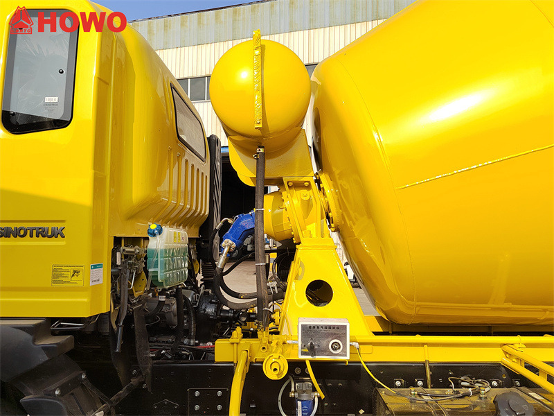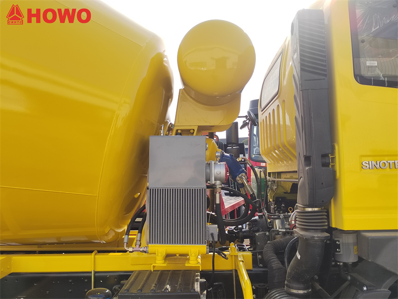 HOWO 5立方メートルコンクリートミキサートラックは、HOWO 2080ローとハーフキャブを採用し、総重量16トン、ホイールベース3800mmです。SINOTRUK MC05.18-40 180馬力エンジンとHW90510C 10速ギアボックスを搭載しています。上部ミキシングタンクの容量は5立方メートルで、Q355マンガン鋼製です。タンク本体は4mm、ヘッドは6mmです。減速機、油圧ポンプとモーター、ラジエーター、エアコントロールボックスアセンブリ、400Lの水タンク容量、空気圧給水、テールの両側コントロールハンドル、リンケージ操作、低残渣率を備えています。