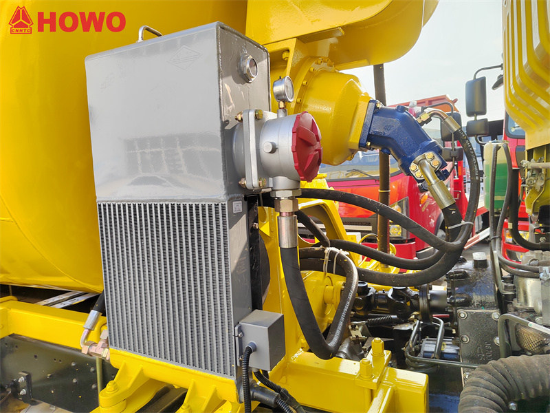 このシステムの核となるのは、協調的な動力伝達と流体制御です。Sinotruk製の180馬力エンジンは、10速トランスミッションによって制御された後、動力取り出し装置(PTO)を介して油圧ポンプを駆動します。この機械エネルギーは高圧オイルに変換され、油圧モーターを駆動します。減速機は速度を落としトルクを増大させ、0~12rpmの無段階速度制御でタンクを駆動し、コンクリートを混合します。