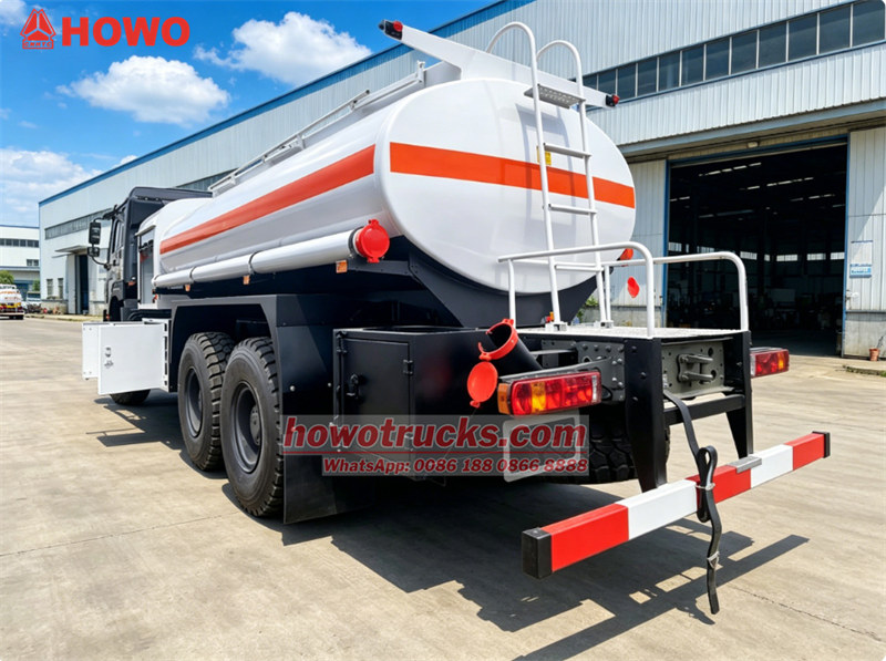 13000*2The Howo 6x6 offroad 12cbm wildland fuel bowser truck is the city special refueling tank truck. The Howo fuel tanker equipped with a WD model 6 cylinder in-line water-cooled turbocharged intercooled diesel engine with a maximum output of 400HP. The gearbox is 10 front speeds and 2 rear speed, equipped with a reinforced diaphragm clutch. The Howo fuel tanker has strong power and good controllability, suitable for various road conditions oil transportation work.