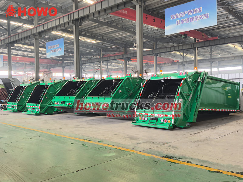 PLC control systemHowo 8 CBM圧縮式ごみ収集車の上部構造は、ごみコンテナ、ローダー、プッシャーブレード、圧縮プレート、および油圧システムで構成されています。コンテナは高強度で耐腐食性に優れた鋼板を溶接して作られており、廃水漏れを防ぐための気密シール構造となっています。
