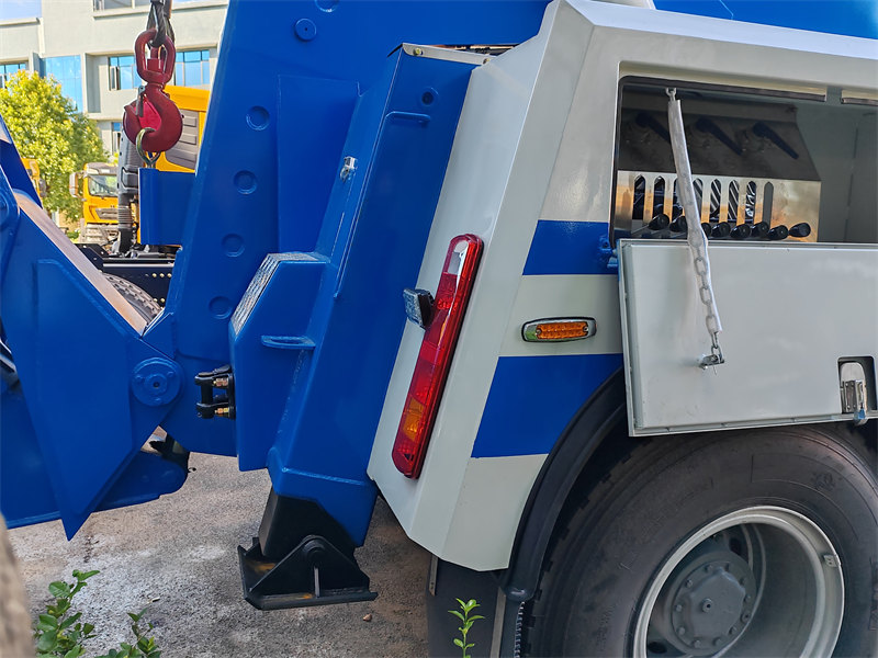 2. 昇降機能: ブームは大型レッカー車にとって不可欠な装備です。通常、ブームには起伏式ジブが装備されており、損傷した車両を片側(または側面)から持ち上げたり、車両全体を持ち上げて適切な位置に再配置したりすることができます。さらに、大型レッカー車はブームの伸縮と起伏を利用して、路肩やその周辺から車両を道路上に引き上げ、直立位置に戻すことができます。