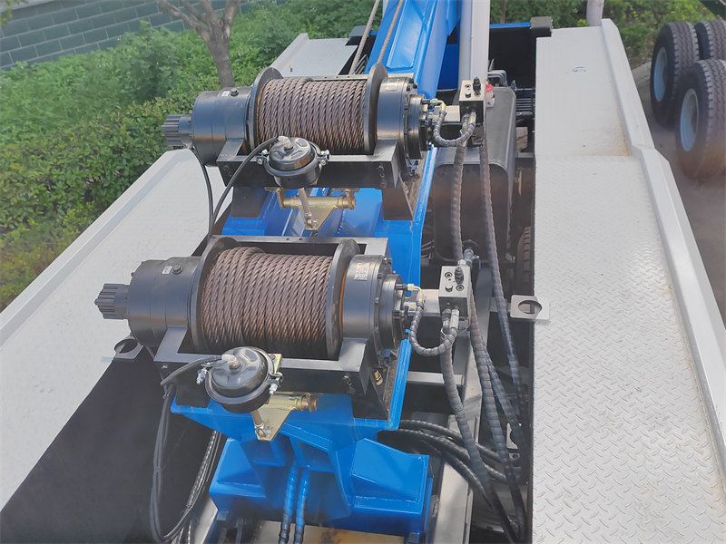 10トン油圧ウインチ2基と直径18mm、長さ45mの鋼線ロープを装備。ウインチはHOWO 8×4レッカー車の主要構成部品の一つです。主に故障車両を牽引アームに吊り上げるために使用され、油圧シリンダーと連携して車両の牽引、持ち上げ、車輪の固定などの機能を実現します。