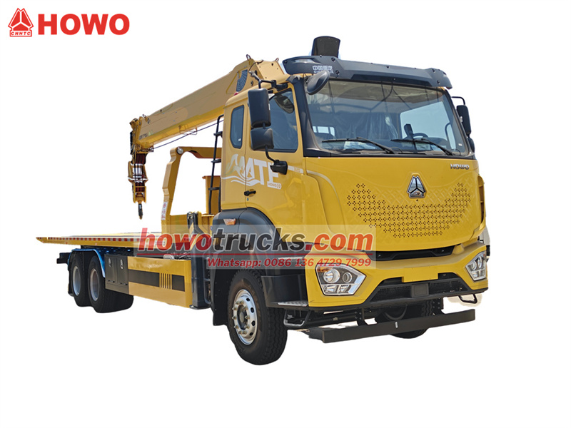 *Howo製 6x4 フラットベッド式レッカー車搭載型 8トンクレーン*