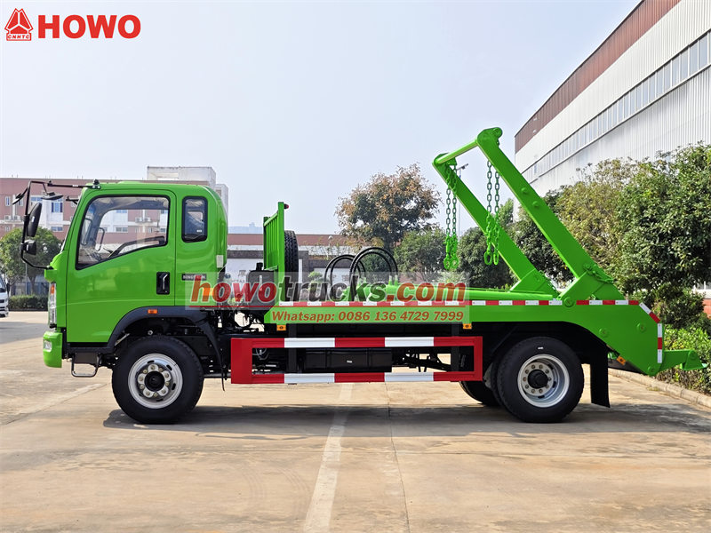 これは、スキップローダーが非常に頑丈で、優れた防錆性を備えていることを意味します。Howoスイングアーム式ごみ収集車の積載プラットフォームには、車両専用のサブフレームがありません。これにより、自重が軽減され、高い積載量が可能になります。高品質のCS トラックの油圧システムは、作業の迅速性と正確性を保証します。