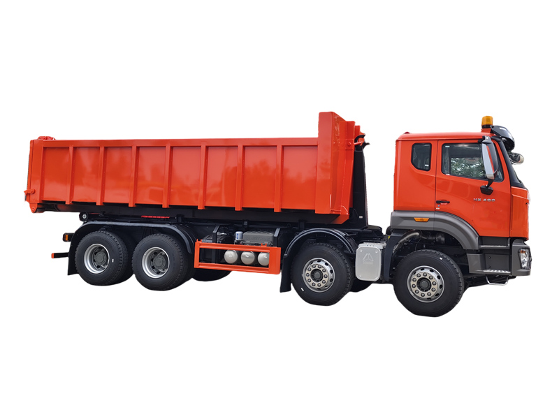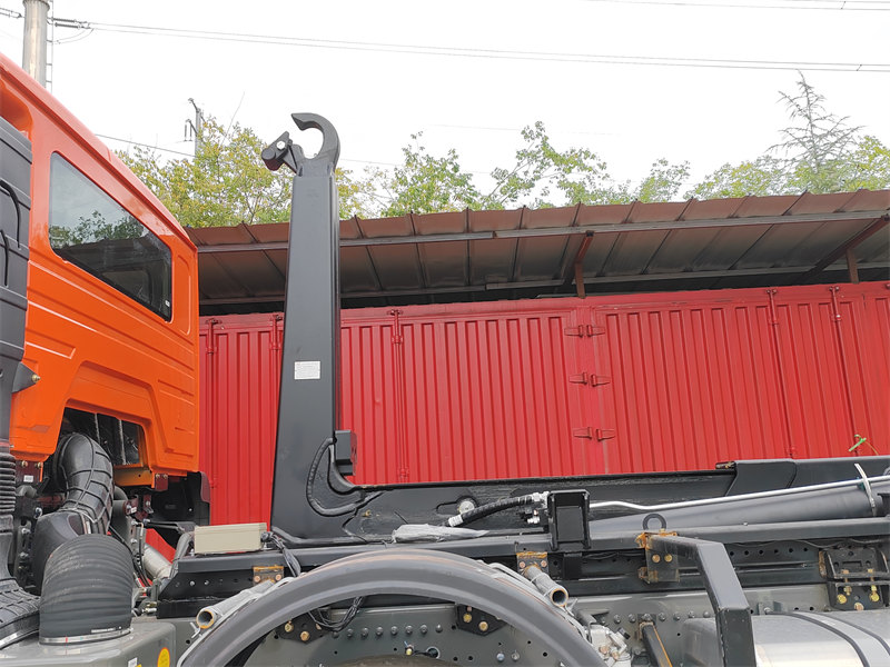 HW76 cabin, 6×6, 25 ton hook arm is optionalHOWO 20トンフックリフト式ごみ収集車は、大型トラックシャーシをベースにした大型清掃車両で、油圧式フックアームシステムを搭載し、ごみコンテナの自動積載、荷降ろし、および自動排出を独立して行うことができます。HOWO NX 8×4シャーシをベースに、Weichai製400馬力エンジンを搭載し、総重量は31,000kgで、15~20立方メートルのごみコンテナを取り扱うように設計されています。油圧機構で制御されるコアとなる20トンフックアームシステムは、1回の動作サイクルを45秒未満で完了し、ごみの移送や複数コンテナの循環輸送において、大幅な効率向上を実現します。