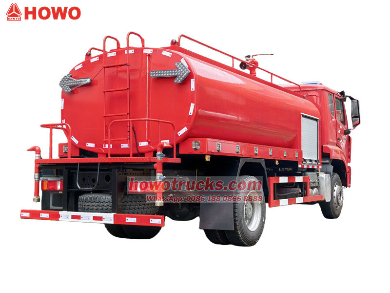 町や農村地域、人里離れた山間部では、消防インフラが脆弱で、完全な消火用水供給網が整備されておらず、道路状況も比較的複雑な場合が多く、消防車には高い機動性と独立した給水能力が求められます。Howoの消防用給水車は、堅牢なシャーシと8000Lの大容量水タンクを備え、外部の水源に頼ることなく、単独で消火活動を行うことができます。