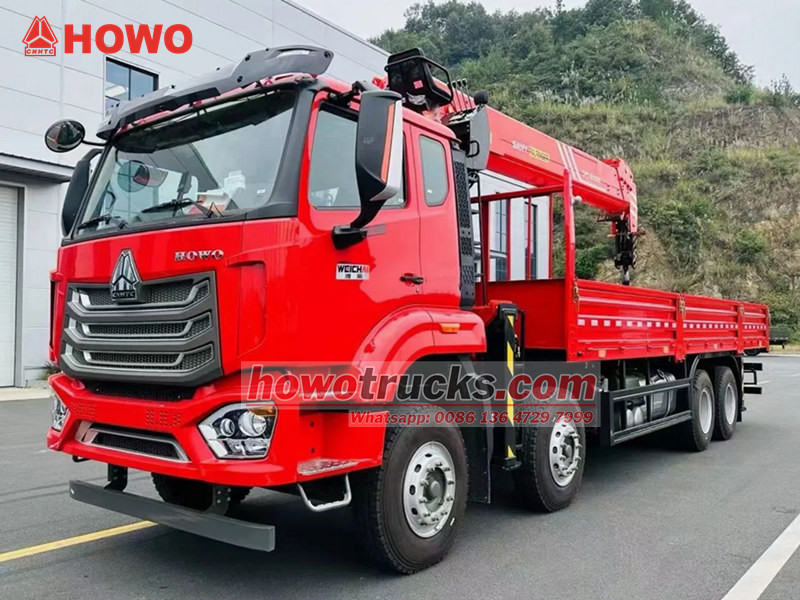 XCMG crane, UNIC crane, knuckle boom crane is optionalHOWO NX 8×4 トラック搭載クレーンは、吊り上げと運搬機能を兼ね備えた多機能大型車両です。最大吊り上げ能力16トン、最大トルク40トンメートルのPalfinger SPS40000クレーンを搭載しています。5段伸縮ブームは最大19メートルまで伸長し、360度全方向回転機能と相まって、様々な吊り上げ作業において柔軟な操作性を実現します。シャーシはHOWO NXシリーズをベースとし、出力273kWの9.7リッターディーゼルエンジンを搭載。10速トランスミッションとエアブレーキシステムを組み合わせることで、複雑な作業環境下でも安定した性能を発揮します。