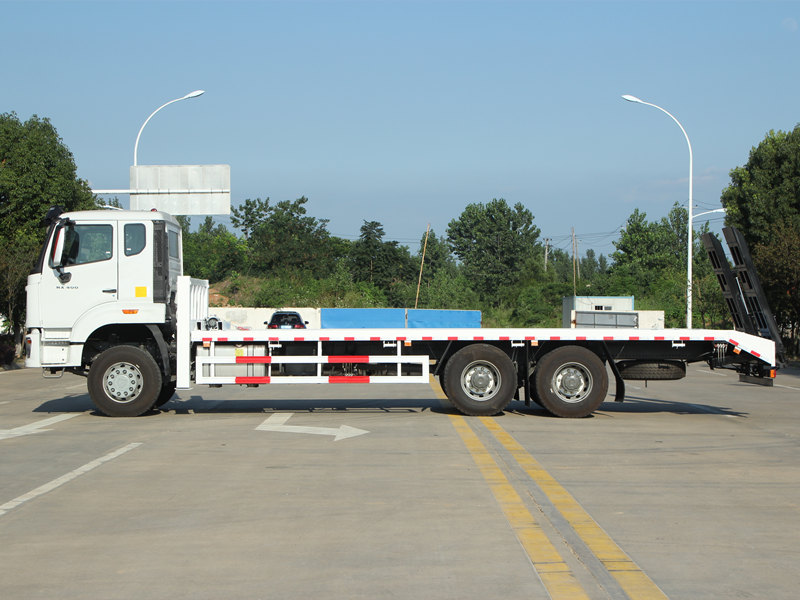 HOWO NX セルフローダートラックは、大型建設機械の輸送専用に設計されたプロ仕様の車両です。HOWO 6×4駆動シャーシをベースに、400HPのWeichai高圧コモンレールエンジンを搭載し、高い効率性と環境性能を兼ね備えた堅牢な性能を実現しています。8600×2500mmの滑り止めフラットベッド、20トンのフロントリフト油圧アウトリガー2基、4トンの油圧ウインチを装備し、大型掘削機などの輸送および現場での作業ニーズを完全に満たす、安全で信頼性の高い積み下ろしシステムを構築しています。