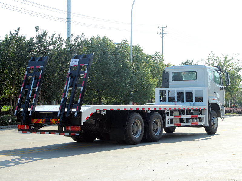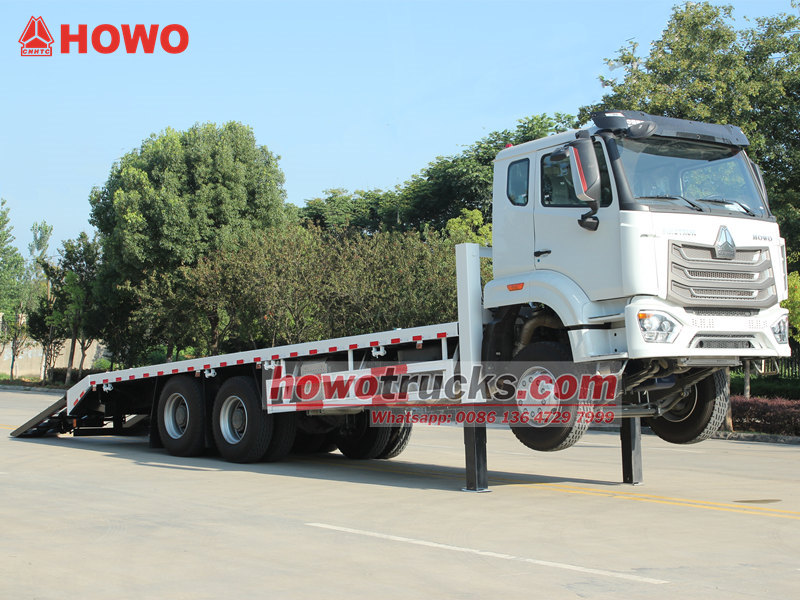 これ HOWO NX セルフローディングトラック プロフェッショナルでパワフルな機能を備えています。荷台は厚さ8mmの滑り止め加工が施された鋼板製で、寸法は8600×2500mm。中型掘削機などの機器を安全に運搬するために特別に設計されています。車両後部には長さ2mの油圧式ランプが2基装備されており、機械の積み下ろしが容易です。さらに、それぞれ20トンの吊り上げ能力を持つ2基のフロント油圧式アウトリガーが、不整地での作業時の安定性を大幅に向上させます。また、フロントには4トンの油圧式ウインチも装備されており、回収作業や機器の固定に使用でき、フィリピンのユーザーが求める汎用性と信頼性を包括的に満たしています。