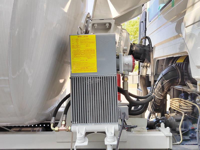 2. 油圧伝動システム: このシステムは、動力取り出し装置(PTO)を介して抽出されたエンジン動力を油圧エネルギー(変位と圧力)に変換し、それをモーターを通して機械エネルギー(速度とトルク)として出力し、ミキサードラムを駆動します。