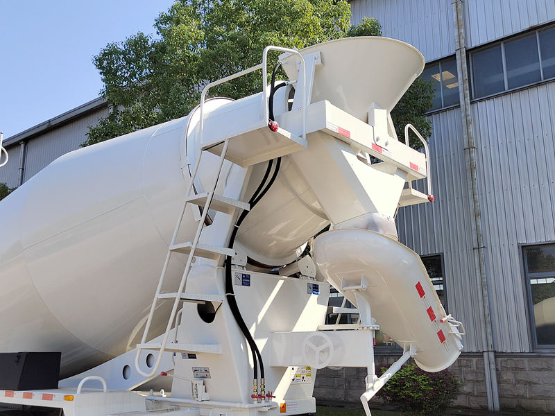 HOWO NX400型コンクリートミキサー車の核となるのは、車両後部に搭載されたミキシングドラムです。ドラム内部の回転するらせん状のブレードがコンクリートを絶えず攪拌し、輸送中の均一な状態を保ち、固化を防ぎます。両端が先細りで中央が円筒形をしたこのドラムは、洋ナシのような形状をしており、様々な種類や仕様のコンクリートを効率的に混合することができます。
