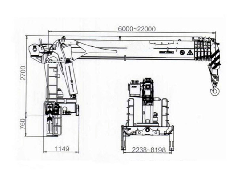 クレーンの重量は 357重量0kg、設置スペースは 2350mm。操作パネルは英語またはその他の言語を選択でき、さまざまなニーズを持つユーザーに対応できます。 ホウォ貨物トラック搭載型20トンクレーン また、伸縮式ブームクレーン、油圧式ダンプボックス、ニーズに合わせてカスタマイズ可能なボックスの厚さや高さ、オプションのリモートコントロールボックスなど、さまざまなオプション構成も提供しています。