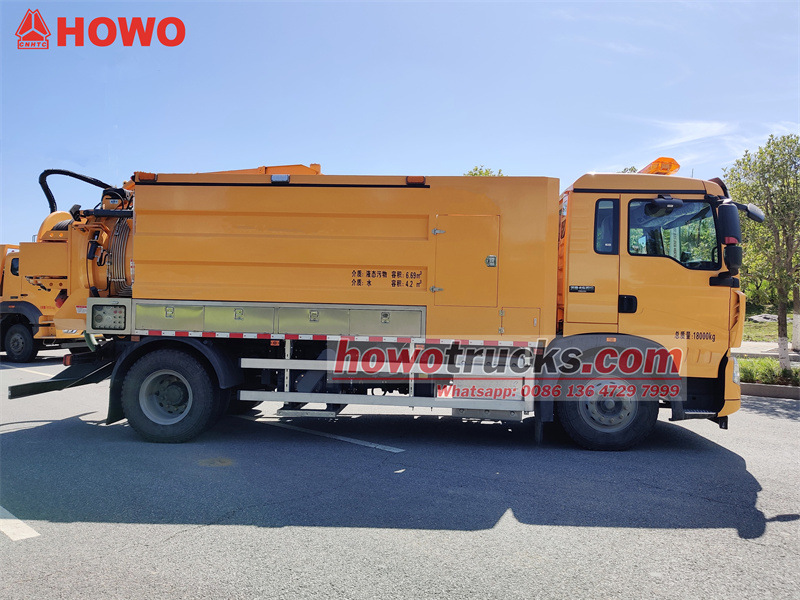 HOWO 4x2 11立方メートル複合型ジェット洗浄車は、HOWO TX 2280 1.5列シャーシをベースに製造されており、快適性と操縦性のバランスが取れているため、都市部や複雑な道路での作業に適しています。