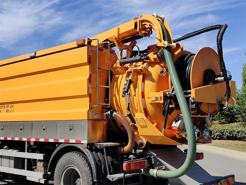 2. 高圧洗浄システム: 運転中、シャーシの動力取り出し装置が3N2-SZ高圧洗浄ポンプを駆動し、清水タンクから加圧された清水をリールノズルから噴射してパイプの内壁を洗浄します。高速の水流が強力な衝撃力を生み出し、頑固な汚れを除去します。